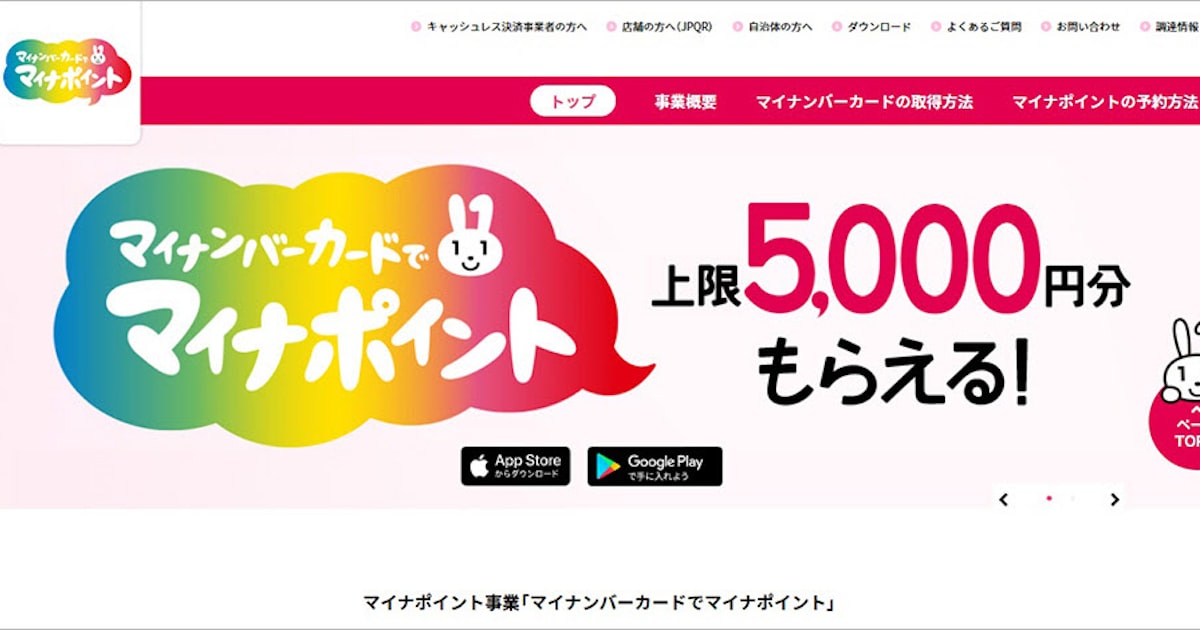 「マイナンバーカードの普及」「キャッシュレス化の推進」という二兎(にと)を追う、主に総務省が主導する施策である。